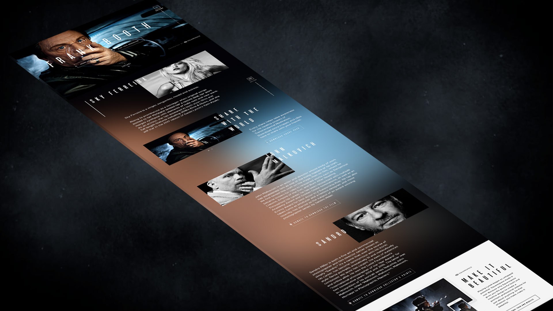 We took this new playbook to name, develop and launch a robust digital experience for an ambitious project in which actor John Malkovich took on the roles of director David Lynch’s most iconic characters, was captured by legendary photographer Sandro, and benefited The David Lynch Foundation.